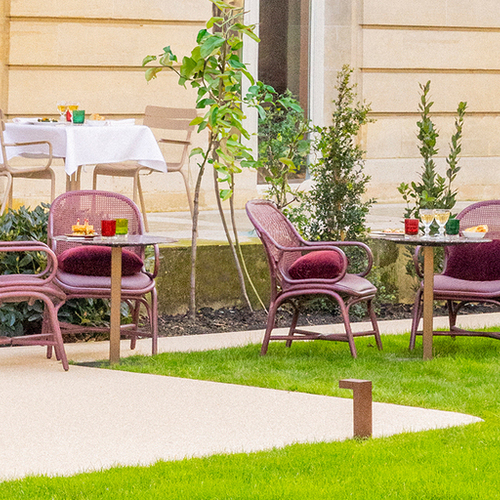 potager d’été, faisant ainsi écho au mot d’ordre maintes fois répété d’Alain Ducasse : « Avant la cuisine, il y a la nature. » Au fil de la saison, on y trouvera par exemple des tomates anciennes, des courgettes jaunes ou encore des aubergines.